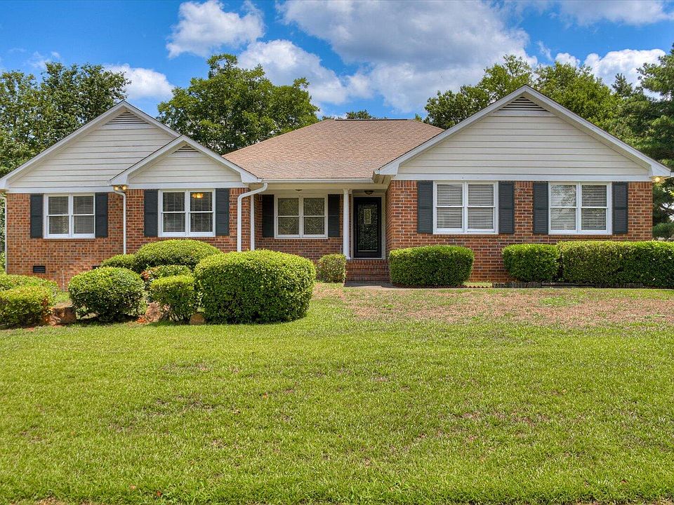 Located in the Watervale subdivision, this home offers an excellent opportunity to own a beautiful property in a prime location, with the potential to add your personal touch and upgrades. This meticulously maintained all-brick ranch-style home features a split floorplan with 3 bedrooms, 2.5 baths, and a versatile office that can easily serve as a 4th bedroom. The family room includes a fireplace and built-in shelving. The kitchen features stainless steel appliances and an eat-in breakfast area, with an adjoining den or dining room. The master suite includes a separate shower, a garden tub, and dual vanities. The guest bedrooms have a Jack and Jill bath with dual vanities. Additional features of this home include a laundry room and a 2-car side entry garage. The rear patio overlooks a covered gazebo, and the large fenced yard provides space for children and pets. This home is close to major roadways, making commuting easy, and is located in the Stevens Creek Elementary, Stallings Island Middle School, and Lakeside High School district. This home is well-maintained, move-in ready, and offers great potential for updates.