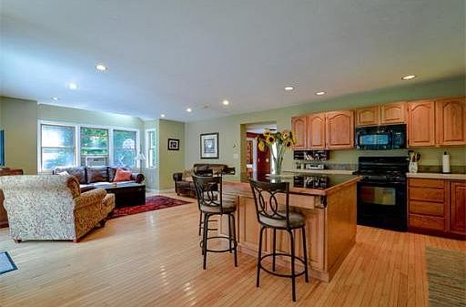 You will be delighted with the wonderful combination of new & old in this spacious antique colonial w/ charming farmers porch. Wide pine floor & hardwood on 1st floor. HUGE open floor plan w/ kitchen, dining & family rooms in the back of the house. Interior features include big workspace in kitchen enhanced by center island w/ seating that opens to bright dining area and comfortable family room w/ terrific space for entertaining and everyday living. Convenient side mudroom entrance w/ tile floor. Previous updates include windows, GAS heating system, electrical, & roof (2010). Master suite has cathedral bedroom with adjacent sitting area and updated master bath. More surprises await--Sliders from kitchen lead to oversized deck where you can enjoy the seasons throughout the year and a Huge LEVEL back yard (3 apple trees--see photo) barn/shed for outdoor entertaining and additional storage. A five minute walk to beautiful LAKE WHITEHALL--canoeing, fishing or walking the 7 miles of trails!