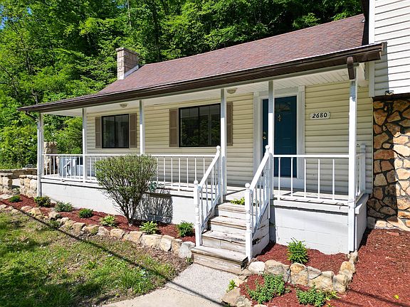 This spacious home boasts a bright and inviting living space with oversized windows, perfect for letting the sunshine in. The recently updated kitchen features tiled backsplash and seamlessly flows into the living area. Relax on the expansive covered front porch or enjoy the privacy of your upstairs deck. The outdoor patio features a cozy stone fireplace and makes an ideal place to enjoy all the seasons. Upstairs, two bedrooms share a Jack and Jill bathroom. Freshly painted and all new carpet throughout. This move-in ready gem awaits your arrival!