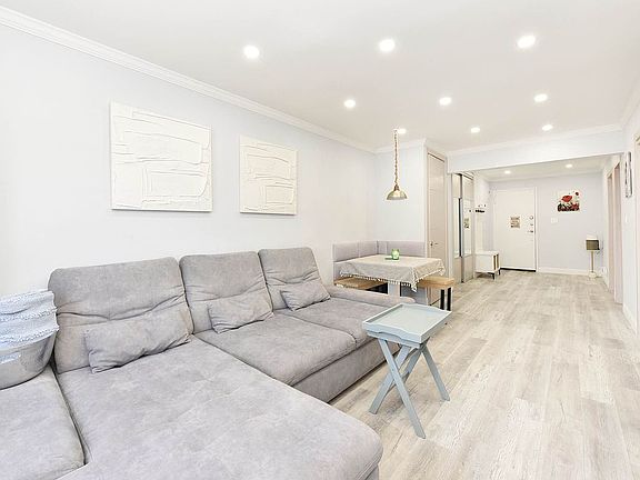 Step into this beautifully renovated 2-bedroom, 1-bathroom co-op that offers the perfect blend of comfort and style. The galley kitchen is a chef’s dream with stunning cabinetry accented by gold hardware, stainless steel appliances, gas cooking, and a sleek quartz countertop. A gorgeous backsplash adds a pop of elegance, and a window lets in natural light, making this space both functional and inviting.
