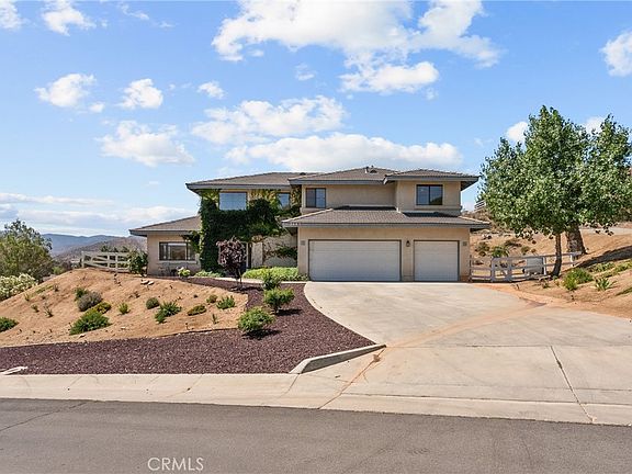 Come home to this lovely 2 story ranch-style property with so much to offer nestled on approximately one acre of open land, offering incredible panoramic views and endless possibilities. Plenty of open space, with room to build out your own barn, workshop or ADU. Zoned for horses or make your own family farm, even build an ADU. This home is well cared for with beautiful newer flooring and updated light and bright paint colors throughout. Large living space downstairs, family room has a fireplace plus there’s a large bonus loft area upstairs. Formal dining and breakfast nook area. One bedroom,full bathroom and laundry room downstairs. Kitchen has newer updated quartz counter tops and appliances. Nice private bricked back patio with above ground spa included for entertaining. Three car garage completes this home with all that you need.