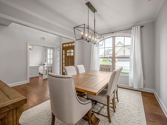 Pot fillerFormal diningGourmet kitchenProfessional stainless steel appliancesMarble tile backsplashOpen floor planTwo-story great room