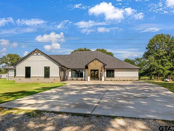 Step inside this stunning home built in 2021. This impeccable property features 4 bedrooms and 3.5 bathrooms, situated on a sprawling 4-acre lot. This impeccable property boasts sleek modern finishes, creating a sophisticated and elegant ambiance. With beautiful gold fixtures throughout, subtle accent pieces and large floor to ceiling windows, this home is breathtaking. The gourmet kitchen is equipped with stainless steel appliances, a large accent island, double oven, and a convenient walk-in pantry. Enjoy a custom wine bar and chiller, for entertaining guests or enjoying a quiet night in. The primary suite offers a large open concept, along with expansive private bathroom and walk in closet. Primary bath features elegant finishes, double vanity, soaker tub, double walk-in shower, and an abundance of storage. The exquisite primary closet features island storage, accented with a beautiful golden chandelier, this closet is one of a kind. Outside this property features a large backyard with mature trees providing shade and privacy. You'll also find an awe-inspiring outdoor fire pit surrounded by large wooden swings, creating a cozy and inviting outdoor space ideal for expansive gatherings. Don't miss this opportunity to own a truly exceptional home. Schedule a viewing today and envision yourself living in luxury and comfort in this remarkable property.