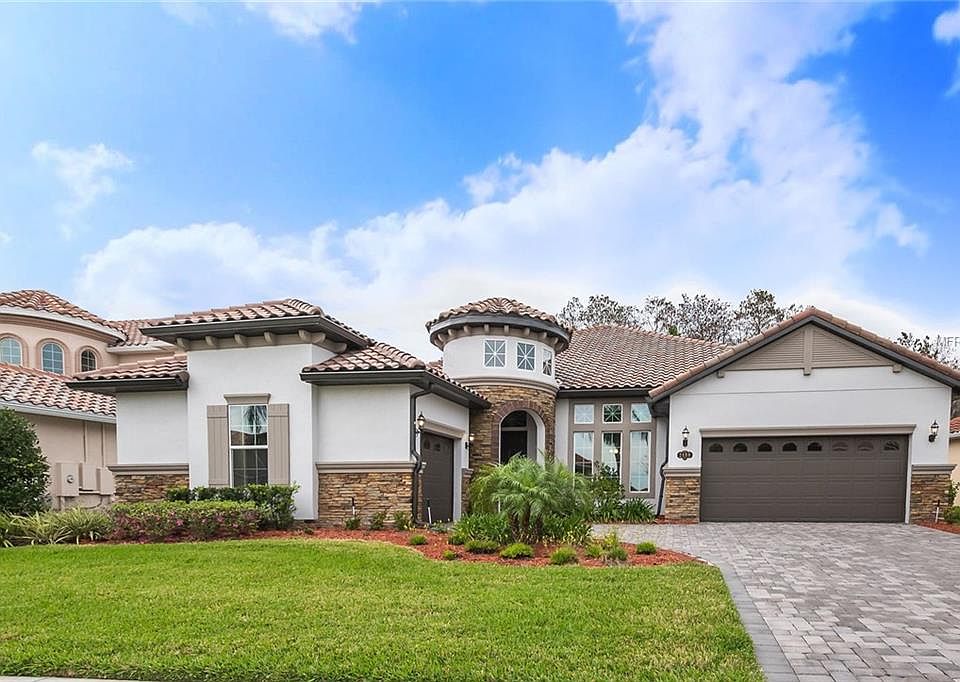 This glorious, "GRAND MODERN SPANISH STYLE" home, with a TILED ROOF, is LOCATED CENTRALLY in the highly desired city of Kissimmee, GATED & with easy access to highways, shopping centers, and entertainment. Walking towards the home, one encounters an oversized brick-paved driveway, leading to the unmissable ARCHED front entrance, accented by SEALED "Back Country Corner Stone." Stepping in, one meets a combination of beauty including 12x23.5" PORCELAIN TILE, 12 FT CEILINGS, 5.5" RAISED BASEBOARDS, & CROWN MOLDING throughout. To the right is the formal dining room, complimented by NATURAL LIGHT; to the left are 2 bedrooms & a full bath featuring GRANITE COUNTERTOPS, & a FRENCH-ARCHED, & TILED, garden tub/shower combo. Towards the center of the home, the oversized Great Room gracefully connects every piece of the home, including a slightly hidden sunroom with VAULTED CEILINGS. In the opposite direction, the extensive kitchen boasts GRANITE COUNTERTOPS, a Central ISLAND, Stainless Steel GE RANGE, MICROWAVE & DISHWASHER, & UPGRADED SOFT-CLOSE "Chocolate Maple Glazed" 42" cabinetry. POCKET SLIDING DOORS allow easy access to the LUXURIOUS HEATED pool/spa & PREMIUM CONSERVATION view with fencing. The master suite welcomes you with high 10 ft CEILINGS, CROWN MOLDING, & continuous PORCELAIN TILE flowing to the master bath, featuring GRANITE tops, His/Her's sinks, a beautifully tiled walk-in shower, a garden tub with shower tile, & an ample walk-in closet. New efficient Carrier A/C 2017 & AO Smith water heater 2017.