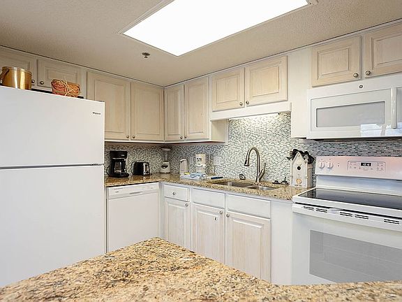 Beautiful beachfront 3 BR 2 BA Condo overlooking Beach and Ocean. Has King Bed in Master (with large bath), Queen in one Guest Rm (with attached bath), and 2 Double Beds in 3rd Bedroom.