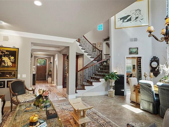 Elegant Luxury Lifestyle. 3 Bedroom 4 Bath Townhome located in the Prestigious Gated Avignon community in Valencia. NO MELLO ROOS! Location, Location, Location backs to the Valencia Country Club Golf Course, starting with an amazing view of the 17th Fairway. A Large wrap around patio/yard invites relaxation to sip your favorite beverage while watching the golfers from seclusion. Take a stroll to shopping, restaurants, coffee shops and nearby amenities. The Private rec center with pool/spa and outdoor gardens is a short walk away. The Dramatic Entry welcomes you into a home filled with luxury finishes. The Living Room features recessed lights and is open to the Dining Room. Dining Room ceiling soars two stories and offers lots of natural light from multiple windows and sliding doors with direct access to the patio and yard. An adjacent Butler’s Pantry provides wine refrigerators as well as control panel for whole house and patio sound system. Combined Gourmet Kitchen/family room includes ceiling beams, fireplace, eye level 65” curved TV, granite counters, subzero refrigerator, gas range, double ovens (one convection) an abundance of cabinets, pots and pans rack, walk-in pantry with prep sink. First Floor Primary Bedroom Suite features a unique entrance with inlaid mosaic tile, has a raised hearth fireplace and spacious custom walk-in closet. Primary Bathroom has an expansive dual sink vanity, walk-in shower, and soaking tub. Guest Powder Room also located on the First Floor highlights sound dampening sunbrella fabric walls. On the 2nd floor, the Loft/Bonus Area features a custom built library plus a Rotunda sitting area that can be used in so many ways. Upstairs Bedroom Two with ceiling fan and walk-in closet also has a full en-suite bathroom. Upstairs Bedroom Three, used as an Office by the current owner, features wood flooring, ceiling fan and walk-in closet. Entertainer’s backyard displays a large covered patio, lush landscaping, outdoor kitchen, Pond and Golf Course View! Installed in the Two car garage are 220v car charging station and washer and dryer hookups. Upscale Amenities Galore: Travertine, crown molding, wainscoting, wrought iron railings, upgraded chandeliers, built-ins, whole house water filtration system, central vacuum, and more. Contact your agent to schedule a showing before it's gone.