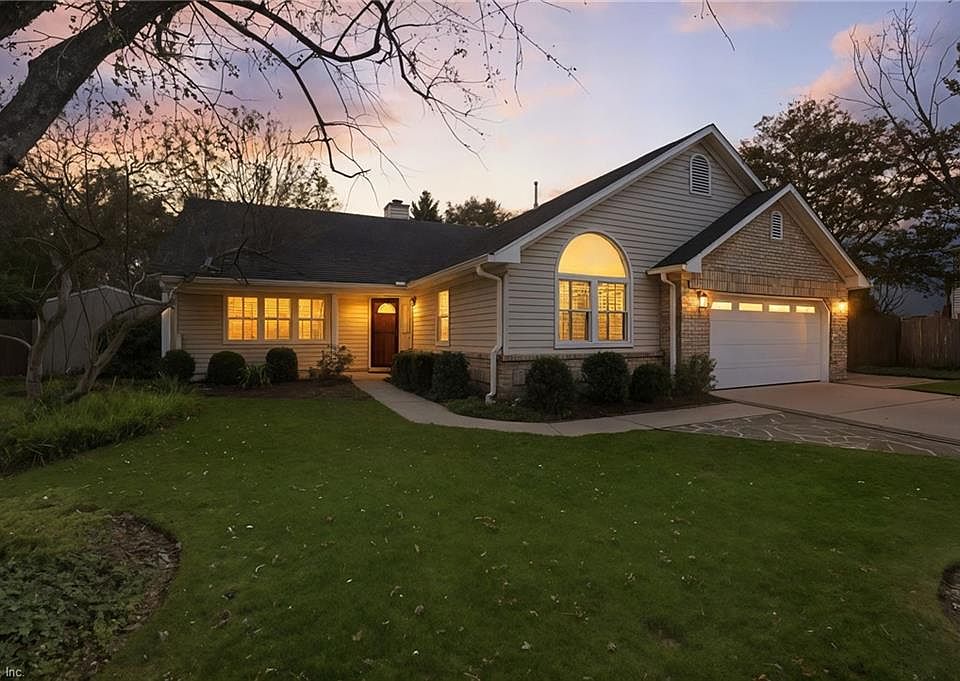 Welcome to this charming and elegant home featuring beautifully remodeled kitchen and bathrooms. Enjoy numerous updates throughout, including granite countertops, new flooring, a newer roof, gutters, and windows, plantation shutters, Andersen storm door, and a stunning concrete driveway with paver accents. This meticulously maintained home is truly one of a kind. There are beautiful annuals planted in the flower beds; Purple Iris, Jonquils, Amaryllis, and Rose Bushes! Located in the desirable Southern Woods community, you will appreciate its proximity to shopping, dining, and the Virginia Beach Resort area. Zoned for top-rated schools, this home offers both comfort and convenience. Everything is done! Just move in and enjoy. Welcome home!