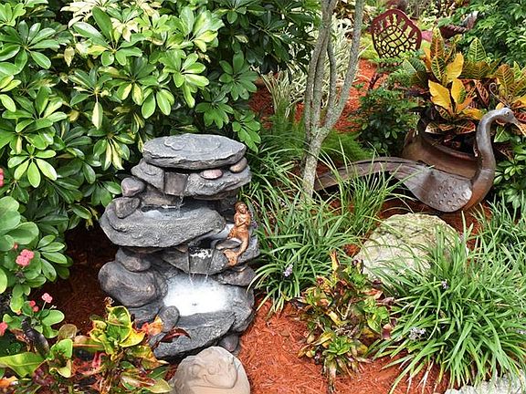Paradise found! Surrounded by Selby Garden like setting this POOL home offers 3 Bedroom, 2 Bath + DEN! Beautiful gardens, fountains and intricate details lead you to the front door. This IMMACULATE plan opens to a great room with separate living and dining and eat in gourmet kitchen with stainless steel appliances (recently remodeled). The guest rooms share a updated bath with shower. Endless possibilities for the 4th room. Currently being used as a den could easily convert to a bedroom/playroom or Office! The Master suite has an oversized closet with additional storage. Enjoy the private views of the pool and garden from here. Remodeled Master Bath boasts double sinks, separate shower and garden bath. Additional living area opens to your back yard TROPICAL OASIS complete with fire pit and hammock area, swing set and more! This Unique property won't last long!
