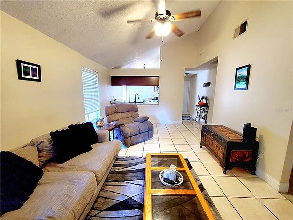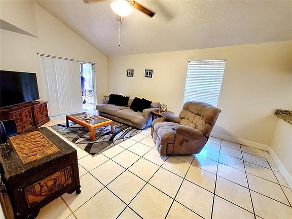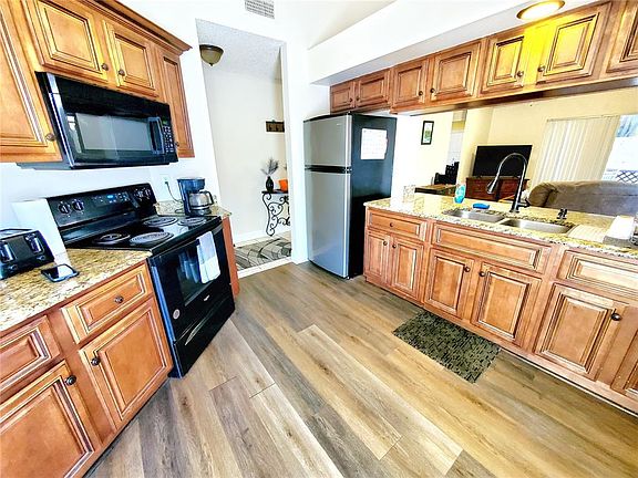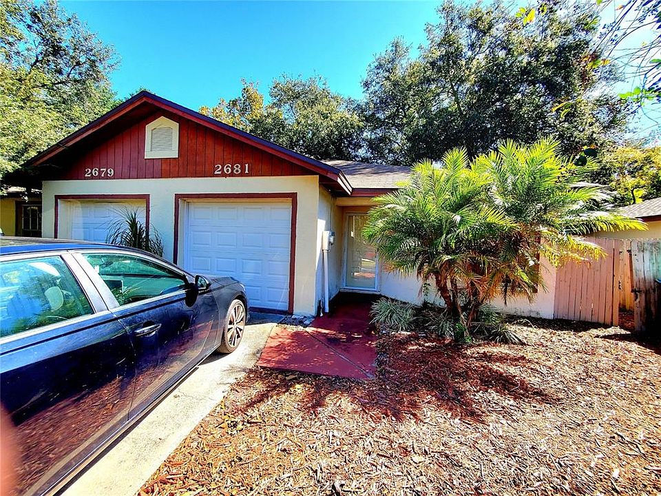 **ADORABLE ATTACHED HOME** Looking for an alternative to a condo or can't afford a house? This might be the perfect option for you! Nestled on a cul-de-sac in the heart of sought-after Palm Harbor, this property is ideal for first-time homebuyers or investors seeking a great rental in a prime location. The home includes a 1-car garage and a small, fenced yard. Though compact in square footage, the vaulted ceilings and open floor plan make it feel spacious and airy. The updated eat-in kitchen features granite countertops and beautiful wood cabinetry. With laminate and tile flooring throughout, there's no carpet to worry about. The bathroom has been updated with a modern vanity and granite top. The garage boasts a newer door and opener, updated water heater, and a laundry area. The great room with cathedral ceilings has a slider leading to the back patio. Out back, you'll find a covered screen lanai and a newer wood privacy fence. The interior is a blank slate, ready to be transformed into a cozy home for someone starting out or downsizing. Conveniently located near Lake St. George, restaurants, shopping, and schools, this home is in a high and dry, no-flood zone area!