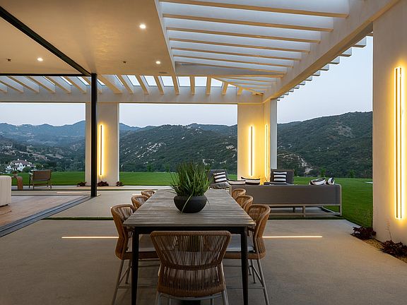 This breathtaking Calabasas new construction offers an ultra-private universe exceeding all expectations. Perched high atop one of the most elevated promontory sites, this stunning, sleek, progressively designed estate is set behind the gates of the exclusive 8-home enclave of Country Ridge Estates. A modern Spanish which sets a new standard of elegance featuring astounding 360-degree panoramic views, soaring 24'-foot ceilings, rare designer finishes throughout, and nearly every luxury amenity imaginable. Seven spacious en-suite bedrooms, nine bathrooms, over 9000 square feet of luxury living space, expansive covered patios and terraces, and an 11.11-acre lot combine to create impeccable living at its finest. Enter through a massive steel and glass pivot door into the magnificently scaled grand entry to the great room with its two-sided stone-faced feature fireplace and an abundance of floor-to-ceiling Fleetwood doors and windows showcasing the awe-inspiring canyon views. The super sexy, modern kitchen features textured stone counters, a massive center island, custom cabinetry, and a hidden sous chef pantry. The primary suite is a personal penthouse overlooking the panoramic views and grounds. The primary bath includes double sinks, a separate stone soaking tub, walk-in shower, and boutique, two-sided impeccably finished white oak closet. The Junior primary and each en-suite bedroom have private terraces with views, uniquely designed bathrooms, and walk-in closets. A true 'indoor/outdoor' living experience awaits as fully retracting floor-to-ceiling doors lead to the entertainer back yard, complete with a pool, infinity edge spa, sunken fire pit, fully equipped outdoor kitchen, and bar all set against the jaw-dropping backdrop of the magnificent mountains. The state-of-the-art movie theatre boasts a Dolby ATMOS System, rarely installed in private residences, with direct access to the outdoor entertainment space. Additional features include highly distinctive, hotel-like lighting fixtures, a showcase wine room, Plum Temperature Controlled Wine Server, custom oak paneling and cabinets throughout, a 6-car garage, a recreation room, and a total smart home automation system. Protectively situated within the Santa Monica Mountains. Highly acclaimed Las Virgenes School District, minutes to Calabasas proper and Malibu. For those looking to live an extraordinary life surrounded by sophistication and beauty, you've arrived.Can be leased furnished. The owner pays for Gardener, Pool Maintenance and Repairs. The tenant pays all other utilities. Call re: Pets; Pet deposit will be required if approved. Longer terms can be negotiated, and lease to own is an option.