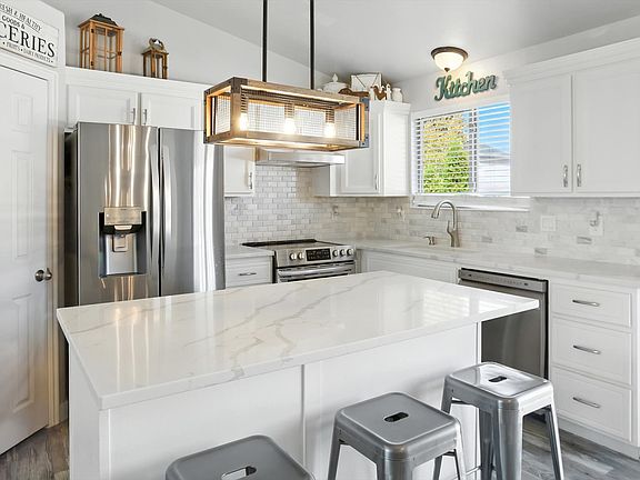 Step into this spacious bi-level home where thoughtful updates and timeless style come together. The remodeled kitchen is a showstopper with gleaming quartz countertops, marble subway tile backsplash, and genuine white cabinetry (not painted) for a classic, enduring look. A convenient pantry adds even more storage, making it as functional as it is beautiful. The primary suite feels like a retreat, featuring dual closets and an updated bathroom with a sleek quartz countertop. With 4 bedrooms and 3 full baths, there's room for everyone to spread out comfortably. Vaulted ceilings and an abundance of natural light fill the home with warmth, while the attic, extra-long double garage, and large custom shed provide all the storage you could need. Outside, enjoy evenings on the freshly painted deck overlooking a fully fenced yard-perfect for entertaining, gardening, or simply relaxing. Families will love the highly rated schools with Spanish immersion programs nearby, and commuters will appreciate being just 5 minutes from the West Davis Corridor and 8 minutes from I-15.