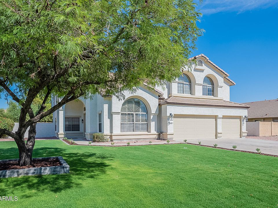 Stunning home in the Gilbert Commons! This 4 Bed w/den, 3 bath, 3 car garage with a POOL is gorgeous. Home has been completely remodeled. As you pull up to the home you are greeted with all new lush sod and new front landscaping. Exterior of the home has been repainted and has brand new roof underlayment. Through the front doors you are welcomed with vaulted ceilings, a grand circular staircase and brand new hardwood floors. Lots of custom touches throughout the home. To the left of the front door is a formal dining area with a swing door into the brand new kitchen. The kitchen features a massive waterfall peninsula, quartz counters, white shaker cabinets, tiled backsplash and deluxe appliances. Just off of the kitchen is the family room and a hallway that leads to the laundry room and full bath downstairs. Double glass doors from the foyer lead into the den/office. Upstairs there is a massive loft and all of the bedrooms. Master suite is brand new and gorgeous!! Master bath boasts double sink vanity, large soaking tub, walk in shower, private toilet room and large walk in closet. The split floor plan has the other 3 bedrooms down the hall. New plush patterned carpeting throughout the upstairs and new tile in the hall bath. Plenty of room to entertain in the back yard. Large Patio, new sod and a sparkling pool that has a fresh new pebbletec surface with rock slide and water feature. Garage has built in cabinets and brand new epoxied floors. Home is minutes away from the booming social scene in Downtown Gilbert and the south 202. It is a must see!!
