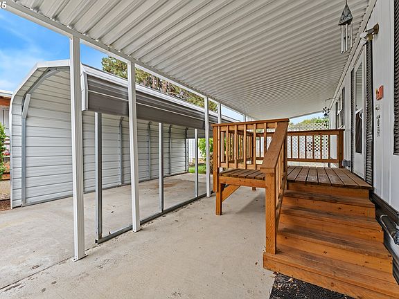 Welcome to this 2-bedroom, 1 bath double-wide manufactured home offering approximately 800 sq. ft. of comfortable living space. Step inside to find an open and spacious living room that flows seamlessly into the dining area, complete with a built in shelf and wall to-wall carpeting that adds warmth and comfort. Kitchen features recently updated countertops, a fresh white tile backsplash, and newly painted cabinets, creating a bright and inviting space to cook and gather. The bathroom was updated in 2019 with new cabinetry, tile flooring, paint, and a modern shower insert. Additional updates include a roof replacement in 2021, new carpet in 2018, a newly installed durable deck, and a brand-new awning providing extra shade and outdoor comfort. A newer carport with deep space offers convenient covered parking. The washer and dryer (purchased last year) are included for added value. This home also features a heat pump for efficient heating and cooling and sits on a spacious, low-maintenance lot. With its combination of comfort, thoughtful updates, and original charm, this home is move-in ready and ideal for those seeking an easy, relaxed lifestyle in a welcoming 55+ community. Schedule your tour TODAY!