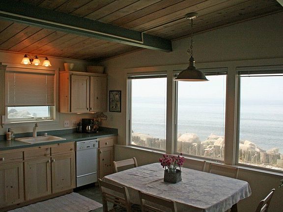Sunset Beach no-bank cute as a button cabin by the sea. This a solid and well maintained cabin with lots of lots of remodeling: new kitchen, new appliances, new bath, new vinyl windows, newer roof. Free-standing propane fireplace, knotty pine ceilings. Other than the beach at your backyard, the panoramic views of the Olympic Mountains, Smith island, and down the Strait of Juan de Fuca makes for spectacular sunsets.