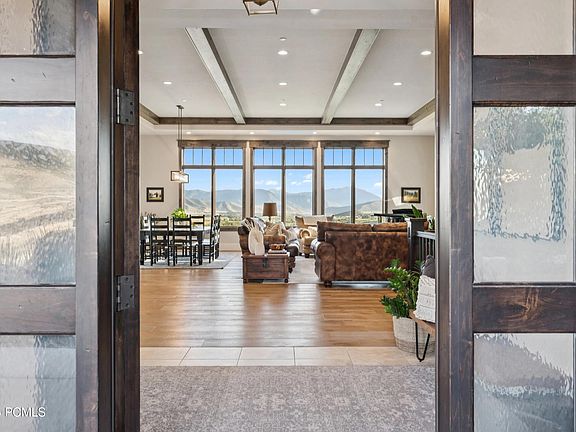 Situated above River Road in Midway, this gorgeous 6900 SF home was designed to capture the most alluring sweeping views encompassing the Provo River, Deer Creek, Mount Timpanogos to the south and Deer Valley East Village's new ski mountains to the north. Built in 2015, each room was positioned with windows framing the breathtaking vistas accompanied by the sound of the burbling water feature and quaking aspens.