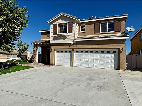 Located in a calm and quiet community next to Kaiser Hospital this SPACIOUS 5 Bed 3 Bath home features gorgeous tile floors in the first floor with upgraded kitchen cabinets and counter tops, a large living room, a down stairs bedroom with a full down stairs bathroom. Has well maintained luxury carpet upstairs with (4) large bedrooms, an office and a HUGE Loft. The upstairs also features an inside laundry room with sink. This home has nice sized easy maintenance back yard with concrete and a covered patio. A front yard with excellent curb appeal; turf instead of natural grass and corner lot home. (3) Car Garage. Centrally located near major shopping centers, schools and minutes from Moreno Valley mall.