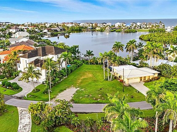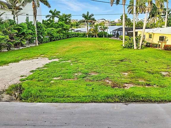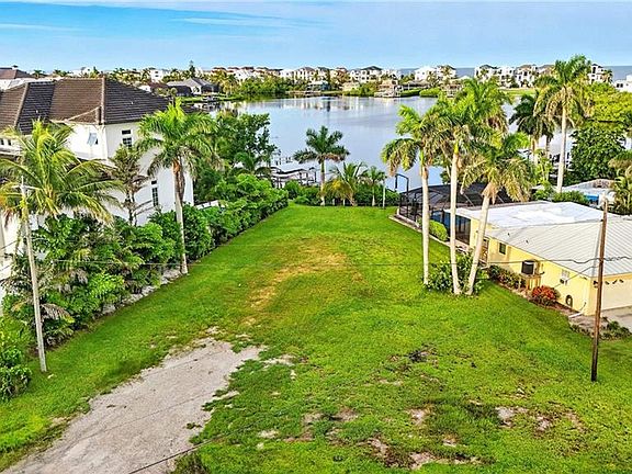 Come and enjoy this beautiful quaint neighborhood of the Carolands by Bonita Beach Survey and building plans are available per your request or bring your own design It is a pie shaped lot with a boat dock and lift on the Bay and one bridge to the Gulf Come and build your dream home. See building plans for existing lot in the attachments