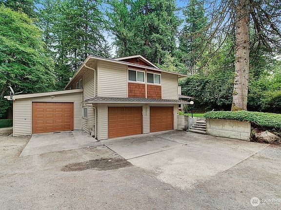 Location is key. This spacious 4 BR / 2.75 BA home is directly across from Lake Meridian boat launch. Nestled back at the end of a quiet cul-de-sac, this secluded gem offers space for entertaining and backs to the Soos Creek Watershed for ultimate privacy. Some of the features include fireplaces, updated appliances, RV Parking, Boat garage, generator wiring and plenty of extra storage. Enjoy endless summers on the lake with a short walk home.