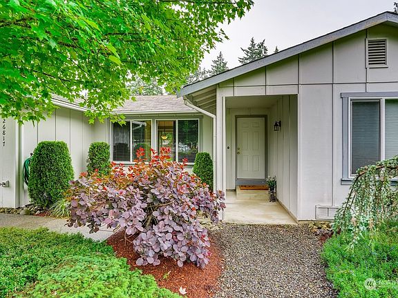 Pleasant and peaceful! This beautifully updated 3 BD, 1.5 BA home with vaulted ceiling and space to play awaits your arrival. Gas fireplace in family room, central AC to cool down on hot days and nice flooring throughout. A wonderful neighborhood feel with no HOA. Nestled in a quiet cul-de-sac and conveniently located minutes to HWY 18, downtown Covington and Lake Meridian. Close to shopping, public fishing, parks, library and Costco. Situated on a 10,220 square foot, fully-fenced and level lot with shed. Two car garage and large driveway with ample outdoor space to entertain. A wonderful opportunity awaits!