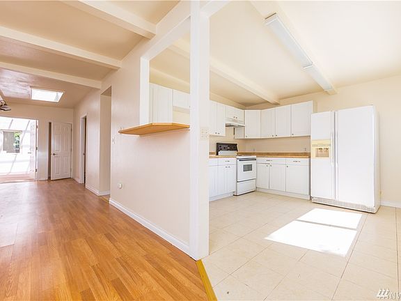 Cute two bedroom sunset facing house with a large kitchen, wood stove, warm sun room & a partial water view. Master bedroom complete with two closets, attached bath, and entry in the warm and cozy sunroom. Great for an indoor garden. Large single car garage with built-in shop space. Expansive backyard with lots of space for entertaining. Gooseberry point beach and Lummi Island ferry just steps away. Fee Simple land ownership.