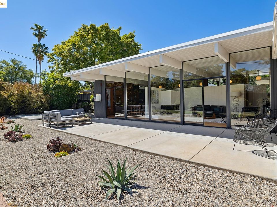 SLEEK LINES, seamless indoor-outdoor living. Stunning EICHLER with classic Architectural details; big windows, great light, open floor plan perfect for entertaining. Original mahogany paneling, REMODELED KITCHEN, updated bathrooms. Easy to maintain level landscaped yard, plenty of room for entertaining, recreation or just relaxing on warm summer evenings. Both front and back are on irrigation. If you need more space the 430 sq ft garage is big enough for a shop or expand into. Located in the coveted Rancho San Miguel neighborhood with its community swim club and TOP-rated schools. Run your pup, play tennis or chill out at the playground in San Miguel park. Enjoy the short walk to Peet's coffee, and other shops and restaurants or spend time biking and walking on the numerous canal trails and paths nearby. Don't miss the Seller owned Solar with grandfathered rates.