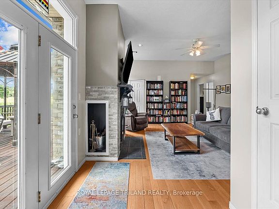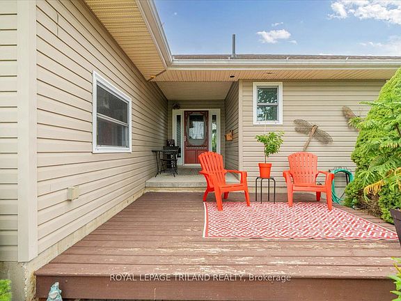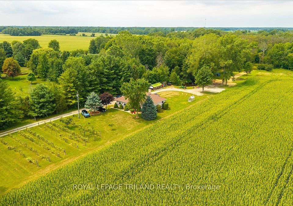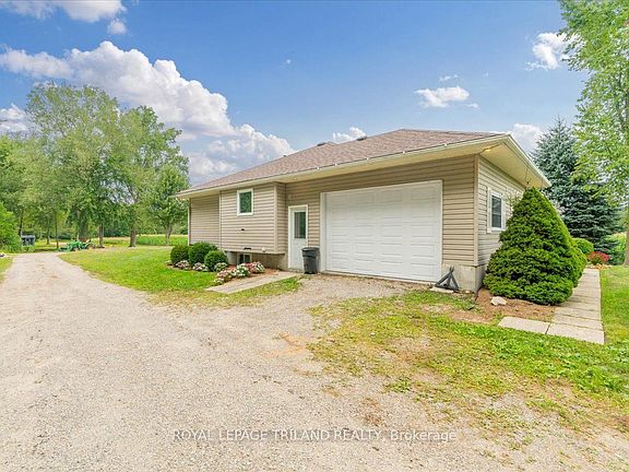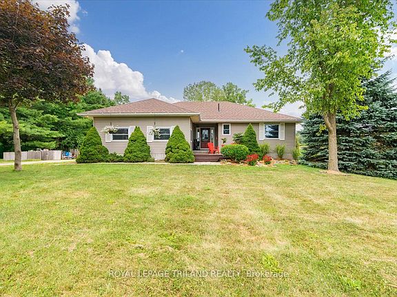Discover tranquil rural living in this charming 2+1 bedroom bungalow situated on 5 beautiful acres. This well-maintained home offers the perfect blend of comfort and country charm with municipal water, efficient propane heating, and wired for generator backup. The main floor features a functional kitchen, separate dining room, and an inviting living room with vaulted ceilings and a cozy wood-burning fireplace - perfect for gathering with family and friends. The attached 1.5-car garage provides convenient parking and storage. The lower level offers exceptional value with a spacious family room, third bedroom complete with walk-in closet, 3-piece bathroom, and an additional flexible room ideal for a home office, craft room, or storage space.Step outside to your own private oasis featuring mature pear trees and grapevines, a serene pond, and meandering walking trails through the property. With 4 acres of bush, you'll enjoy both privacy and the beauty of natural woodland right at your doorstep. This property offers the rare opportunity to own a piece of countryside paradise while remaining conveniently located near West Lorne, Dutton and quick 401 access. Perfect for those seeking space, privacy, and the peaceful country lifestyle.