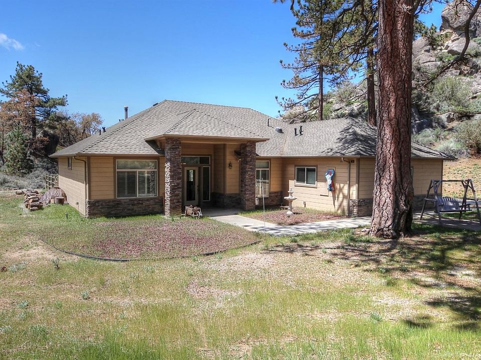 A formal, covered entrance opens into the Great Room with two fireplaces. The gourmet kitchen has lots of cherry cabinetry with granite counters plus tile floors and opens to a patio with lovely views. A formal dining room, large enough for holiday meals adjoins the kitchen. The roomy master suite is to the right and sports a jetted tug and walk-in closet. Two guest rooms to the left share a full bath. The laundry room opens into the attached, 2-car garage. The natural landscape surrounding the home is level enough for play and gardens.