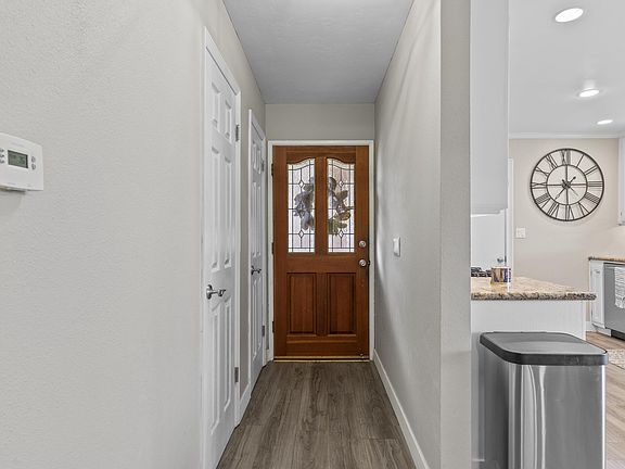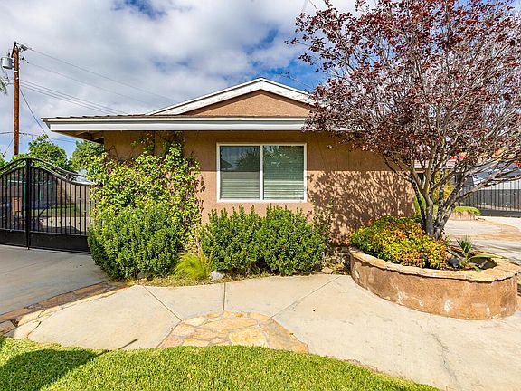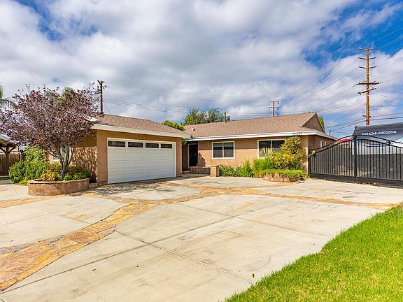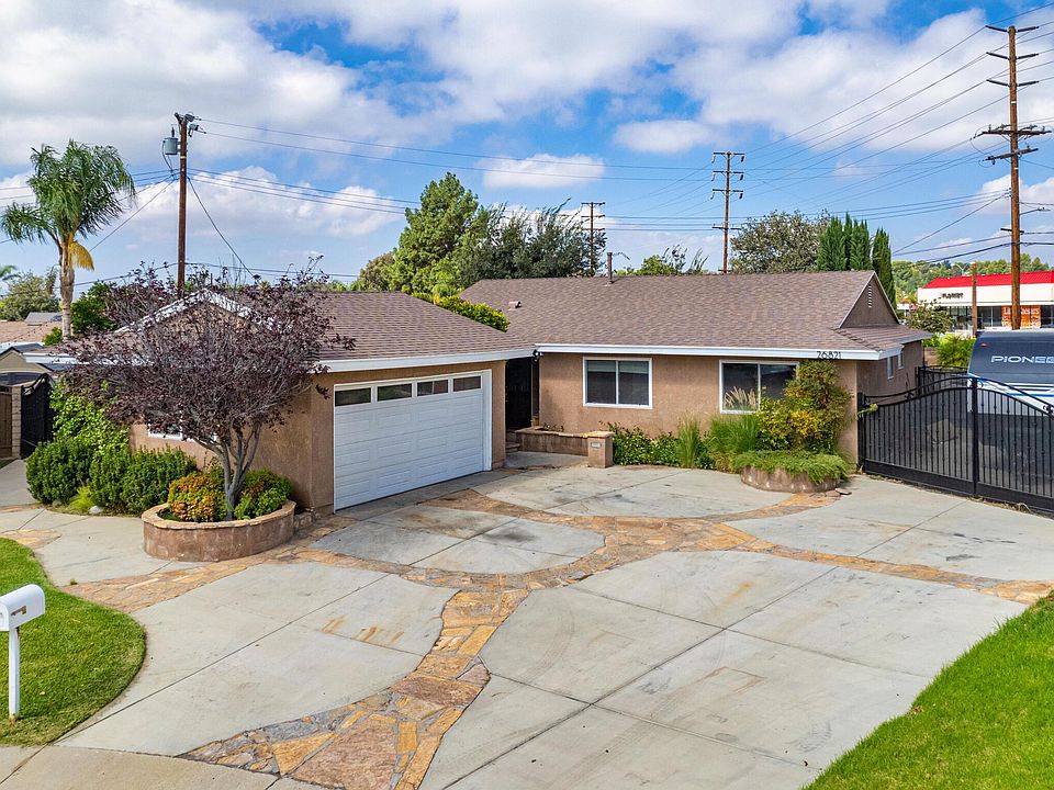 With just under 1400 sq ft of living space this beautiful single-story pool home is a 3-bedroom and 3 bathroom dream nestled perfectly at the end of a cul de sac in the desirable Emblem tract neighborhood. Pulling up to this charming home, you are greeted by an expansive one of a kind driveway perfect for guest parking as well as gated RV access. The entrance to the front door is stone stacked and is the perfect welcome to your new home.Once inside you are greeted by an open floorplan which features a lovingly renovated bright and spacious living and dining room adjoined by the kitchen with recessed lighting, granite countertops and backsplash, stainless steel appliances , and a gorgeous peninsula, ready for entertaining.The oversized indoor laundry room off from the kitchen proudly boasts plenty of storage space and has direct access to the spacious 2 car garage with shiny new epoxy flooring. Upgraded with luxury vinyl flooring throughout the main living spaces and two large sliding glass doors create the perfect indoor outdoor entertaining flow complete with two covered patios. The primary bedroom comes complete with a walk in closet beautifully upgraded en-suite with granite countertops and a large walk in shower. All bedrooms are located conveniently on the north east side of the home. Additional features include: An expansive backyard fully fenced complete within landscaping and mature trees for privacy. Boasting on the side yard a plentiful grapefruit tree that produces year round. To top it off there is a gorgeous in ground black bottom pool with a Baja shelf perfect for those sunny California days which flows right into into the outdoor bar with a built in bbq option.