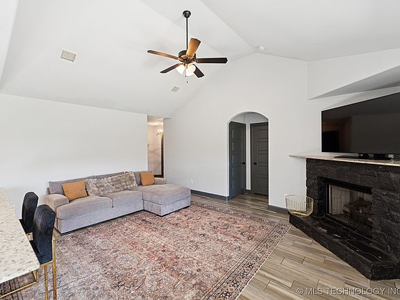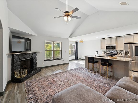 This 3-bed, 2-bath modern home featuring an open floor plan. The sleek kitchen features granite countertops and stainless appliances. Relax in the primary suite with a decorative coved ceiling, full bath with a separated jetted tub and walk-in shower and a huge walk-in closet. The laundry room is conveniently located across the hall from the primary bedroom. At the front of the home you will find 2 standard bedrooms with great closet space and a hall bathroom. This home also has a covered patio that looks out to a green belt and a large two-car garage with attic access —all in a convenient Coweta location close to schools, parks, and shopping.