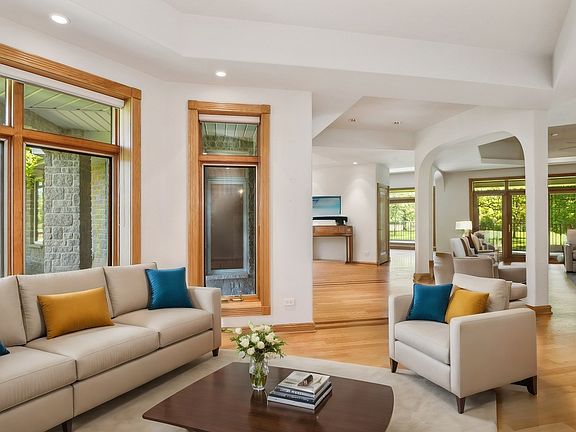 Own a Little Piece of Paradise! Welcome to 26825 W. Molidor, an exquisite property offering over 22 lush, private acres of nature. As you drive through the secured gate and follow the winding road, you'll be greeted by a grand roundabout featuring an 8-foot fountain/bird bath. This custom concrete and stone home is designed for entertaining and comfort. Step onto the welcoming front porch and enter the formal foyer, flanked by a spacious dining room and elegant living room. The expansive open floor plan includes a massive family room with a roaring fireplace and breathtaking nature views. Multiple French doors lead to a wrap-around, no-maintenance concrete deck-perfect for cocktail parties and outdoor cookouts. The chef's kitchen boasts a center island, expansive eating area, and custom cabinetry. Down the hallway are the convenient laundry room, powder room, and a 4-car heated garage. The master suite offers stunning views, French doors to a private oasis, a large walk-in closet, and a luxurious master bath. Two additional bedrooms each have private baths and generous closet space. The lower level is a party lover's dream, featuring multiple French doors to the outdoor patio, another roaring fireplace, a custom wet bar, and plenty of space for billiards, ping pong, shuffleboard, poker, foosball, and more. There's also an exercise room, game room, guest suite, and a gorgeous den with custom paneled ceiling and beautiful outdoor views. This home is move in ready. Recent updates include new A/C (2023), city sewer and water at the entrance gate, an updated backup generator, and an irrigation sprinkler system. Conveniently located near the chain of lakes, shopping, award-winning schools, parks, tollway, and highways. Paradise awaits at 26825 W. Molidor-a home designed to create memories that last a lifetime.