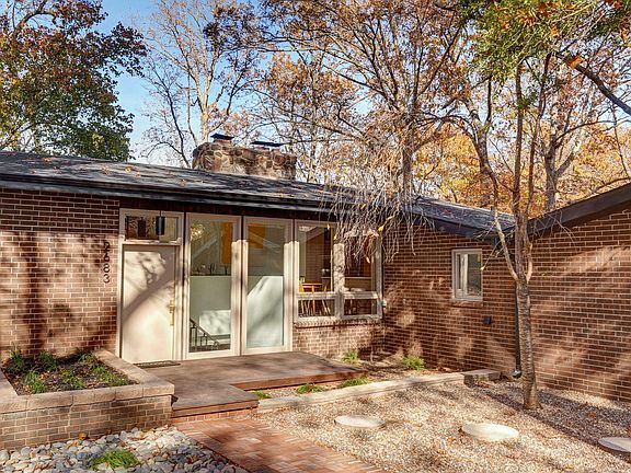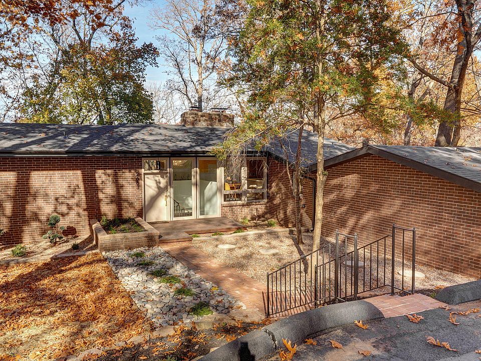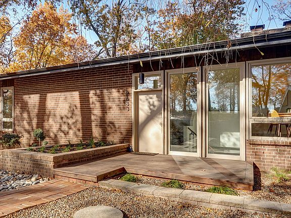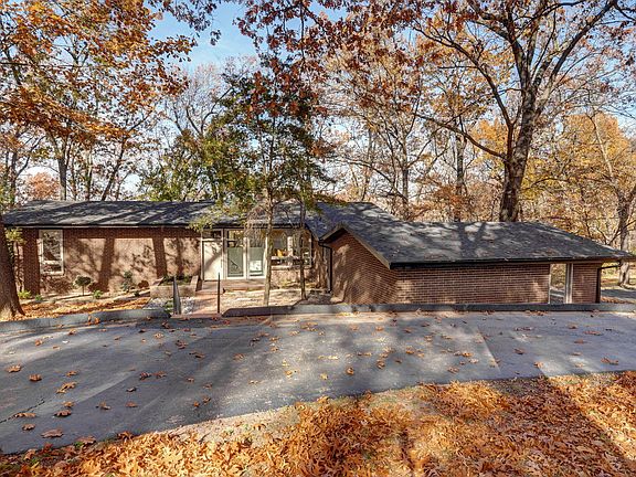A stunning mid-century modern revival tucked away on a .66 acre lot located just moments from the scenic shores of Springfield Lake in a coveted East Springfield neighborhood. From top to bottom, inside and out this all brick, walk-out basement home has undergone extensive renovations. Inside the soaring ceilings and abundance of windows and nature views are captivating at every turn. Mid century style and modern finishes are perfectly contrasted with warmth and comfort throughout. Updated hardwood and tile flooring throughout, all new kitchen including cabinets, quartz counters and backsplash, appliances - a wall oven, convection microwave that doubles as an additional oven and oversized induction cooktop, all new bathrooms, new light fixtures and hardware, new windows in bedrooms and bar area, 5 new sliding glass doors and so much more! The unique floorplan lends itself to a functional and comfortable flow and is perfect for entertaining. A large living space upstairs with 2 dining options and island seating, another large living space downstairs with a wet bar and a bonus room perfect for hobbies, working out or even an additional bedroom if needed means there is no shortage of space. Natural beauty can be enjoyed from inside and out through the floor to ceiling windows or from the massive upstairs covered deck that can be accessed from the 2 sliding doors in the living room or the primary suite, as well as the equally generous downstairs patio. As with the inside, updates outside were completed and include; new roof, gutters, deck updates, circle drive and garage drive sealing and curbs, exterior lights, new front porch, new septic tank, new electrical mast and complete landscaping overhaul. This home is truly a must-see with its one-of-a-kind blend of mid-century charm, modern updates and awe-inspiring natural beauty.