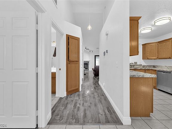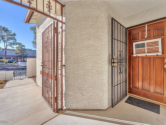 Welcome home! A beautiful turn-key single-story townhome, boasting a sizable 2-car garage, situated on a larger, well-kept end lot with some magnificent mountain and city views surrounding. When you walk in you're invited by expansive vaulted ceilings and a crisp clean feel. One-of-a-kind stone counters in the kitchen that is sure to turn some heads. A large primary bedroom, walk-in closet, and a gorgeous bathroom remodel with a stunning walk-in shower. A clean generously sized guest bedroom with glimpses of the Las Vegas city lights through the window. The backyard is very nicely sized, allowing you to host all your family and friends without stressing. The neighborhood is quiet and well maintained with a fantastic community pool and plenty of guest parking, surrounded by multi-million dollar estates. Plus a brand new 50-gallon water heater with a 6-year warranty. Don't miss your chance, this is the one!