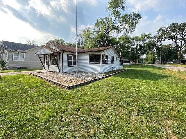 VIEW of the water from the house and the yard. This 2 bedroom is a great Vacation home or a starter home just steps from the water. New carpet and paint. Newer siding, windows, furnace all around 2015. The home is ready for you to just move in. A nice screen in porch/ mud room is great for relaxing and resting your fishing poles. Detached two car garage is room for a work shop . Measurement are approximate.