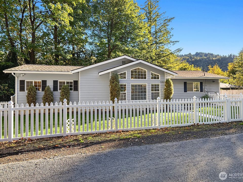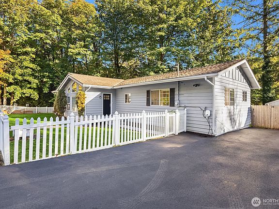 Popular rambler-style home located on small dead-end street is so charming, and the white picket fence completes the look. Open floorplan with vaulted ceilings and large windows makes this home light and bright. Large primary bedroom with walk-in closet and 2-sink ensuite bath. 2 other bedrooms share second full bath and a separate living space that could be bonus room or large den/workspace. Back yard has lawn/tool shed and new hot tub/spa on back deck. Most recently remodeled in 2016. Could also be great investment/rental property. EV charger installed. 3-car driveway parking or RV parking. Quick access to I-90. Issaquah Schools. All appliances included.