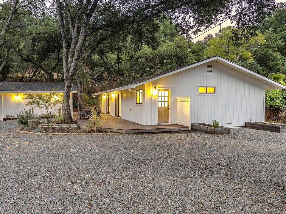 Welcome to Palomino Lakes! Prepare to be impressed by this single-story, farmhouse boasting contemporary updates throughout. Situated on a gated and private 1.13 acre lot, this chic home is ideal for year-round living or weekend get-aways. Wind down with your favorite beverage while enjoying the stunning views of the Alexander Valley, vineyards, and the mountains toward the west. Entertaining is effortless in numerous outdoor venues while adoring the gorgeous sunsets. This stunning showcase also offers plenty of room to garden and even a chicken coop! Additional features include a storage shed, an exterior & interior paint refresh, updated exterior light fixtures, Air Conditioning, a cozy wood burning stove, sleek stainless appliances, rustic interior barn doors and a detached two-car garage. This well-loved home exhibits a sophisticated ambiance with a quiet country charm.