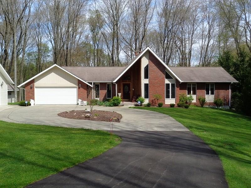 1.8 Secluded Acres. Contemporary Ranch w/Fabulous Views. Full Stone FP, Open Vaulted Ceilings, Open DR/LV/Fully Applianced Kitchen. 3 BR, 2.5 BA. Family Rm w/Full Wall Of Windows, Office/Den & Semi Finished Game Rm In Lower Level. Stunning Deck & Walkways. Att/Grg & Separate Det/Grg, Blacktop & Cement Drive. Central Air.