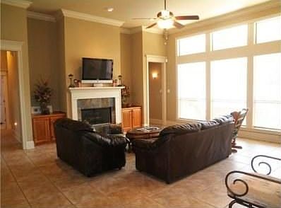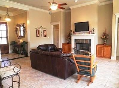 All brick home only 8 yrs new-12ft and 10ft ceilings throughout - Kitchen with stainless appliances, granite tile counters -pantries with wood shelving -Great room featuring gas burning fireplace with slate surround and mantle -Woodwork throughout with attention to detail. Extensive crown molding, wrapped windows, high baseboards-Spacious master suite w/ custom master bath boasting travertine counter tops, jetted tub,custom shower