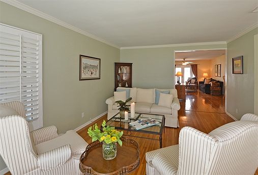 Treat yourself to contemporary living at its finest in this 3bed/2bath turn-key traditional. You'll know you're home the moment you see the terrific curb appeal & inviting porch. Once inside, you're greeted by an open floorplan showcasing formal living rm w/ sunny bay window & comfy family rm w/ French doors leading to yard. The kitchen offers lots of counter & cabinet space, friendly bar seating and opens to the dining rm & family rm, ideal for entertaining. Large private master bedroom also features French doors opening to yard. Character touches, including gorgeous hardwd flrs, plantation shutters, crown molding & a warm color palette, blend nicely w/ modern amenities such as updated electrical & central heat/air. Backyard retreat boasts a winding koi pond w/ rock waterfall & foot bridge, plus grass, side patio & pergola-covered rear patio. Well-located in wonderful neighborhood, close to cafes, shops & schools, w/ quick access to parks, the beach, and all the Westside has to offer.