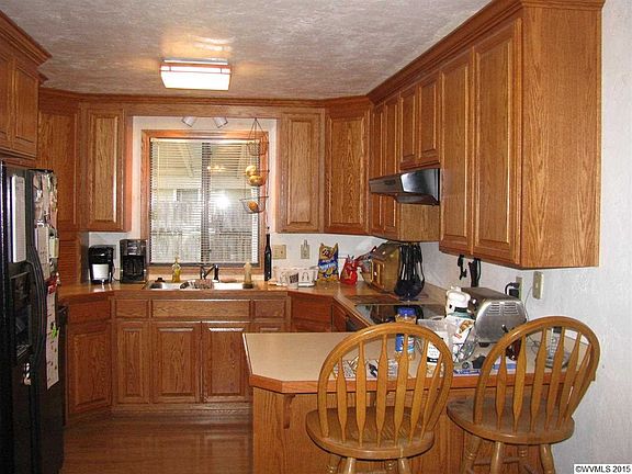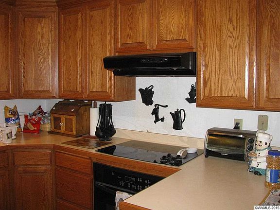 Beautiful, dream kitchen with newer stained red oak cabinets and laminate flooring. Breakfast bar. New 30 year roof in Dec 2013. Gutters with leaf guard. Separate utility room. Covered patio. Grape bower with bench in back yard. Garage has people side door. Room to park boat or trailer on north side. 5x14 storage shed. Fenced back yard.