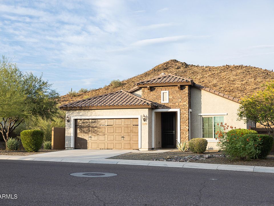 Discover unparalleled luxury in this exquisite 4-bedroom, 2-bathroom single-family home with den, located in the prestigious Fireside at Norterra community. Nestled at the foot of a serene mountain preserve with only one immediate neighbor to the south, this home offers breathtaking mountain views and direct access to nearby hiking trails. Wake up to stunning mountain views from the comfort of your bedroom, and relish the sight of occasional horseback riders on the nearby trail. The outdoor space is a true oasis with a covered patio ideal for dining and entertaining. With low maintenance artificial grass and full paver patio, enjoy the breathtaking views with family and friends.