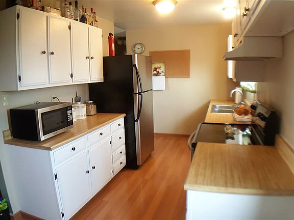 Split design offers 2 levels of daylight space. 3 bedrooms plus office or additional bedroom if closet is added. New vinyl & carpet in family room. Wood stove for those chilly nights. Attached garage, central water. Ready for new owners. Most windows have been replaced & newer roof. Pet friendly house & yard.