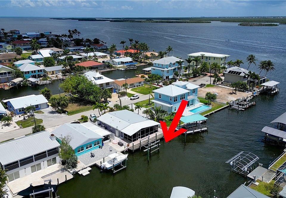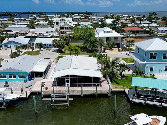 Matlacha Pass View that doesn't break the bank! This 2-bedroom island classic is ideally situated toward the end of a deep-water canal! The views from this home will never get old as you watch the dolphins play and the famous Matlacha sunsets! Not only is this home surrounded by world-class fishing, pristine gulf beaches, incredible native wildlife, it is also within walking distance to everything Matlacha has to offer including art galleries, restaurants and shops. This classic island home is ready for your vision and features a well thought out floor plan complete with a master suite with a large master bath. The living space at the back of the home has incredible views because of the wall-to-wall French doors. Some of the great attributes of this home include, metal roof, hardy board siding, propane gas, on demand water heater, surround sound and plantation shutters. The oversized screened lanai is the perfect place to relax and enjoy the laid-back island lifestyle. The backyard features a large wood dock complete with 7k boatlift that makes getting on the water a breeze. Come see this awesome island retreat make your vision a reality! Now is the time to get into Matlacha and start Living the Island Life! *** Photos to show the possibilities**