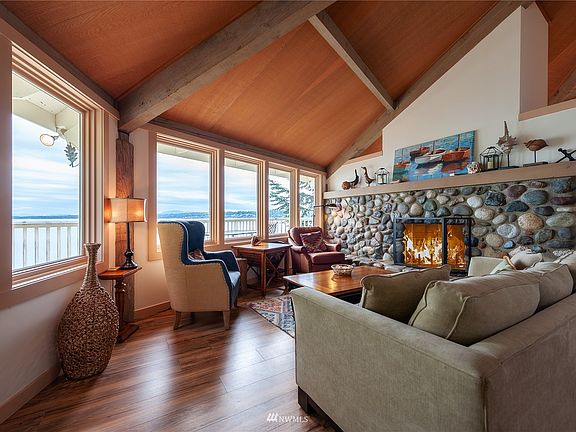 Find the privacy and peace in this one-of-a-kind secluded waterfront estate on 2.38 acres. 300 feet of shoreline with incredible unobstructed Mountain and Ocean views. Gorgeous private beach with mooring buoy. 2 charming homes, a cabin, multiple decks, pathways, a pond and more. Your own old growth forest with native botanical gardens. Guest house is currently an Airbnb and more than pays the mortgage. Spacious greenhouse and shed. Detached garage with shop plus storage. A magical irreplaceable setting where life slows down. This is a true legacy property.