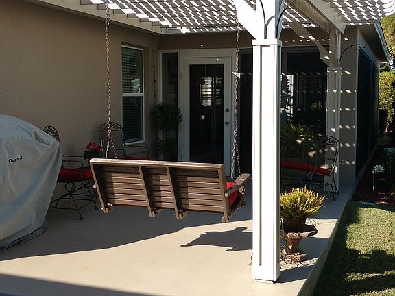 Centrally located in the established Village of Duval, convenient to multiple golf courses, rec centers, and town squares. This beautiful 3 Bedroom, 2 Bath, 2 car garage Lantana designer home is approximately 2,905 sq. ft with 2,030 sq. ft of climate controlled living space. This home's exterior, with recent complete exterior painting, boasts professional landscaping with mature palm trees and an over-sized eastern exposure patio with a lovely cedar pergola. The moment you walk through the front door, you'll find the home's interior decorated with warm and inviting custom paint, high ceilings throughout, cherry cabinetry, corian kitchen counter tops, ceramic tile and carpet. In the master bath, you'll enjoy his and hers sinks, a vanity, a walk in shower, along with a large walk-in closet with a built in jewelry armoire for the lady of the house. The laundry room provides overhead cabinets, a drop in laundry sink, and an alcove perfect for crafting or office space. An expanded enclosed lanai with full length slider windows creates a relaxing environment giving one the feeling of bringing the outdoors inside.