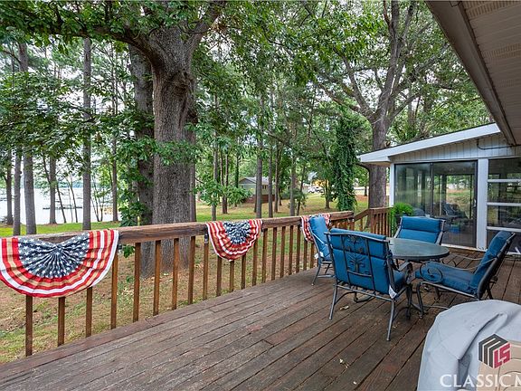 Outstanding... the best way to describe these beautiful views of Lake Hartwell in the coveted Ridge Road area of Hartwell, Georgia. By land, this home is only a few miles from the bustling, and growing, downtown Hartwell scene. The waterfront location is protected in a wide inlet with easy access to deep water and only a stone's throw from Hartwell Marina and the Gum Branch Tournament Mega Ramp. Sitting on over an acre of property, this home has a large, open concept layout with upgraded LVP flooring throughout the entire home. The beautifully remodeled kitchen features granite countertops with an ample amount of cabinet space, with additional storage in the pantry, which is behind a breakfast nook. On the main level, there are three bedrooms and one and a half baths. These features provide plenty of room for family, kids, friends, or guests. The newly added hardwood staircase leads to a spacious master suite with an amazing view of the lake. The master bath features a large soaking tub to relax in, a shower, and a nice walk in closet with abundant storage. In addition, the second level has a small flex space outside of the master that can be used for an office, storage, or a quiet reading nook. As you exit the back, there are more beautiful views with places to entertain. Those being the heated and cooled sunroom, or the wrap around deck. Next, take a short stroll through the tall pines down to the water, and you will make your way onto a single slip dock with a large swim platform attached. Last, but certainly not least, a great feature of this property is the large two-car, detached garage, or workshop, for even more storage and projects, as well as a small storage building behind it. This entertainers paradise won't last long, so come check it out as fast as you can. The only way to cool down from this hot sale is to take a dip in Lake Hartwell. HIGHLY MOTIVATED SELLER AND OPEN TO ALL OFFERS!