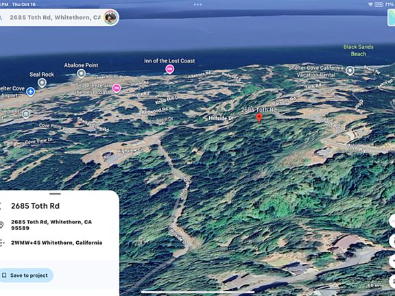 Welcome to beautiful plot of land overlooking the ocean near Shelter Cove in Northern California. Up in the mountains surrounded by reaching trees. A place where seclusion and rural living meet. Build your dream home in Californias Northern Coast. This unincorporated area of Whitethorn has space for power, water, and septic to be built in. Located just minutes away from local amenities such as golf courses, municipal airports, and restaurants. You won't find anything more peaceful. 0.29 acre 12,471 square feet.