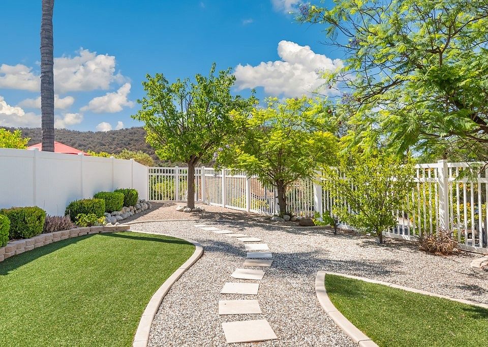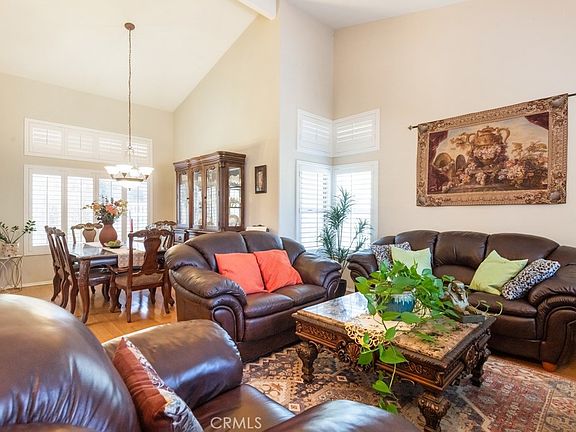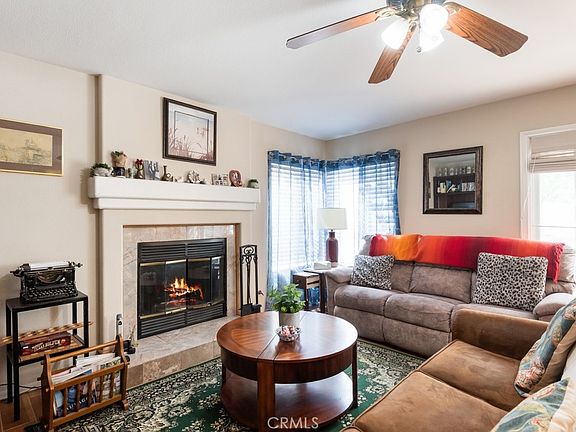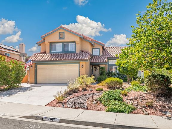 PRICE IMPROVED!! Bring us your offer. Beautifully updated home in a desirable cul-de-sac location with stunning hill views and LOW TAXES and NO HOA! This property boasts a bright, open layout with vaulted ceilings, bamboo flooring, and elegant wood shutters on the windows. The spacious living and dining rooms off the entry flow seamlessly into the family room, where a cozy fireplace with tile surround and mantle creates the perfect gathering spot. The kitchen offers a breakfast nook, warm wood cabinetry, and an open design to the family room for easy entertaining. Upstairs, find 3 bedrooms and 2 bathrooms, including a newly upgraded primary suite featuring a huge tiled shower, dual closets (one walk-in), and modern finishes. Additional highlights include a NEW A/C, NEW water heater, epoxy garage floors, and a HAP water filtration system. The BEAUTIFUL backyard is a true retreat with low-maintenance artificial turf, a covered patio, and peaceful views of the hills. With a direct access 2-car garage and a convenient location close to local schools, shopping, dining, and the 215 freeway, this home combines comfort, style, and everyday convenience.