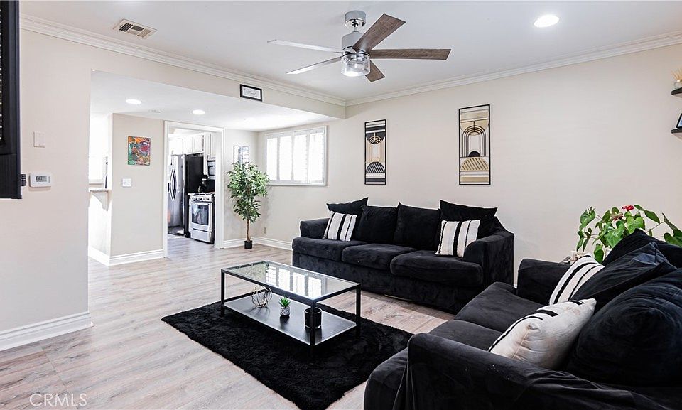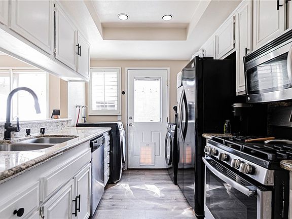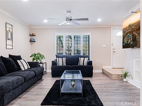 ***HUGE $20K PRICE REDUCTION***This beautiful two story 2-bedroom 2-bathroom end unit townhome located in the very desirable Terrace Community is new to the market. This home features many upgrades such as wood-style laminate flooring, crown molding, recessed lighting, ceiling fans and shutters throughout. As you make your way into the front door you will step into the well-designed, smoothly flowing floor plan. The home is bright with plenty of natural light. The layout begins in the spacious living room which has a built-in entertainment nook with shelving. Next, you step into the dining room with a granite-top breakfast bar area, a large pantry, and a shutter-covered sliding door that leads to the private patio area. The kitchen features rich wood cabinetry, stainless steel, upgraded appliances, and granite countertops. A downstairs bathroom features a custom tile backsplash and custom lighting and mirror. The laundry leads to courtyard access. The upper level offers two spacious bedrooms with ceiling fans and large walk-in closets and a full bathroom. The upstairs bathroom also has a custom tile backsplash, custom mirror, and lighting. The home has plenty of parking including a large one-car garage with plenty of extra space for storage and an attached covered carport with direct access to the home via the large and private courtyard. DON’T MISS OUT on this gem in a quiet lovely neighborhood with lush well-maintained grounds and recreation areas. This is your opportunity to own a home with low HOA fees and NO MELO ROOS! HOA amenities include pool and recreation area with a playground as well as trash pickup and grounds maintenance. Convenient location with easy access to freeways, award-winning schools, parks, lakes, trails, shops, theme parks, and restaurants just minutes away!!