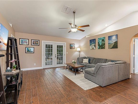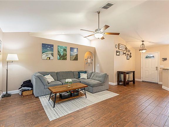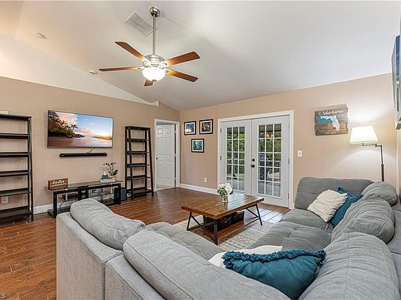Don't miss this meticulously maintained 3 Bedroom, 2 Bath, 2-car garage Single Family Home in the heart of Vibrant Bonita Springs! This inviting open floorplan welcomes you with vaulted ceilings and french doors out to the expansive backyard. Complete with an updated kitchen w/ farmhouse sink, breakfast bar, stainless steel appliances, and walk in pantry with tons of storage. Main living areas feature dark wood ceramic tile, and newly replaced carpet in the bedrooms. Large primary suite with a gorgeous updated bath and walk-in closet. Split bedroom layout, & bright & updated guest bath with skylight. Have peace of mind knowing the roof was replaced in 2020, and the AC in 2019, and it's NOT in a flood zone. Enjoy outdoor living in the recently rescreened lanai with new tile looking out to a sprawling wooden deck that extends the outdoor living space. Mere moments from growing Downtown Bonita Springs, Rooftop at Riverside Park, new Sugar Shack Music Venue, & so much more! This is an active & family-friendly neighborhood, conveniently within a 3-mile radius of 3 elementary schools, 2 middle schools, and a new high school. Easy access to Hwy 75, & Only 5 miles to Bonita & Barefoot beaches. There are NO HOA fees, or rules & restrictions, so bring your Boat or RV with plenty of space! Pet friendly with ¾ of the yard already fenced, and dog park nearby. Priced BELOW appraised value to sell fast! This home is ready for you to move right in and start living in paradise!