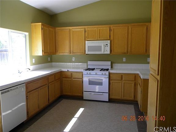 Nice family neighborhood, single story, and tile flooring living room has a fireplace, nice size kitchen. back yard completely fenced. all three bedrooms are nice size, with indoor laundry. close to the 215 freeway, close to shopping. and a 3 car garage.